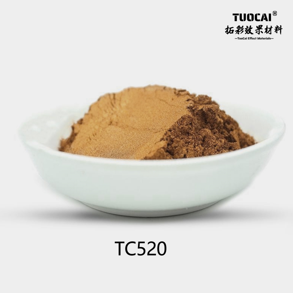 A Série Tuocai Gold é revestida com dióxido de titânio e óxido férrico na superfície da mica. Ela pode produzir um brilho dourado de vários tons, controlando com precisão a proporção de revestimento de dióxido de titânio e óxido férrico. É atóxica e insípida, com excelente resistência a altas temperaturas, resistência a ácidos e álcalis, resistência à luz e não condutividade. Ela resolve o problema da descoloração do pó de cobre tradicional sob condições severas. A cor dourada desta série é completa.